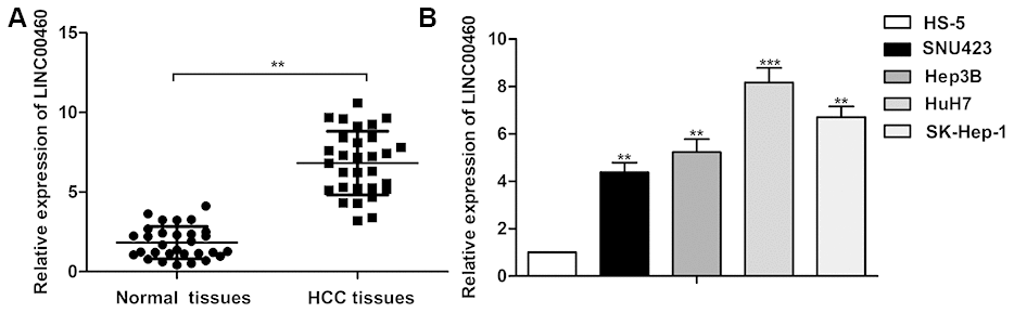 Up-regulated LINC00460 is found in human HCC tissues and cell lines
