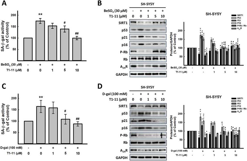 T1-11 markedly diminished BeSO4- and D-gal-induced cellular senescence
