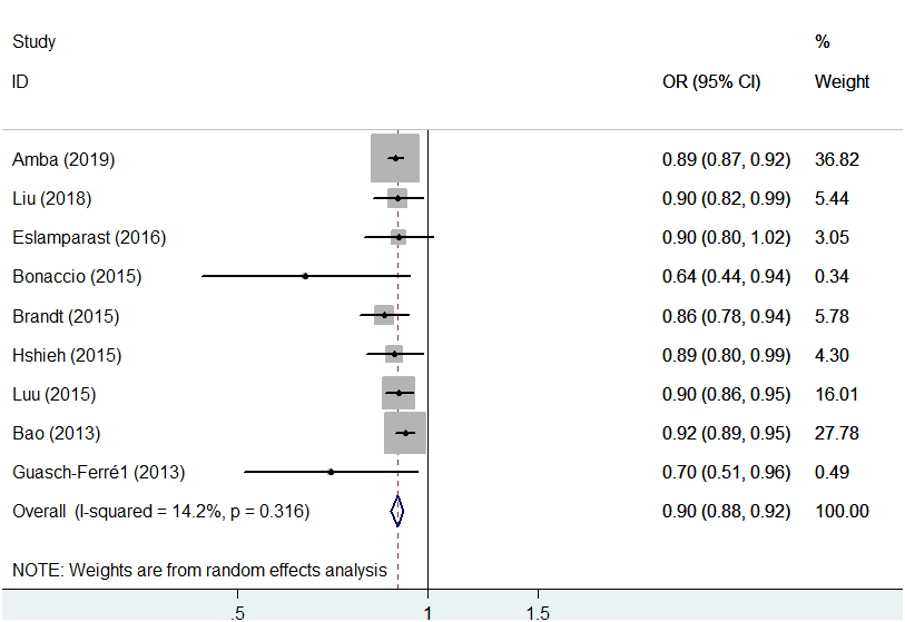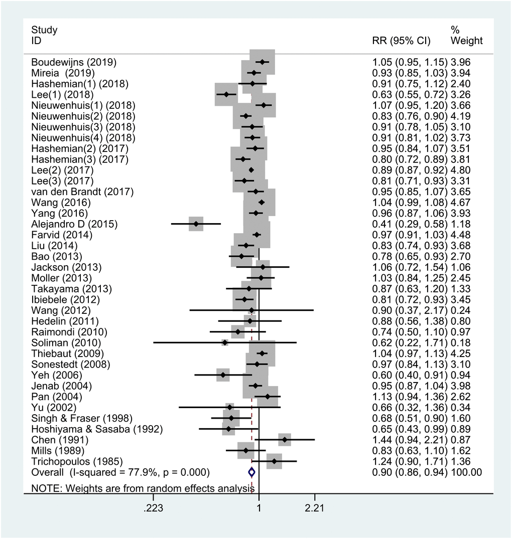 | Developing country | 10 | 0.90 | (0.72-1.13) | 0.365 | 42 | 0.111 | |||||||||||||||||||||||||||||||||||||||||||||||||||||||||||||||||||||||||||||||||||||||||||||