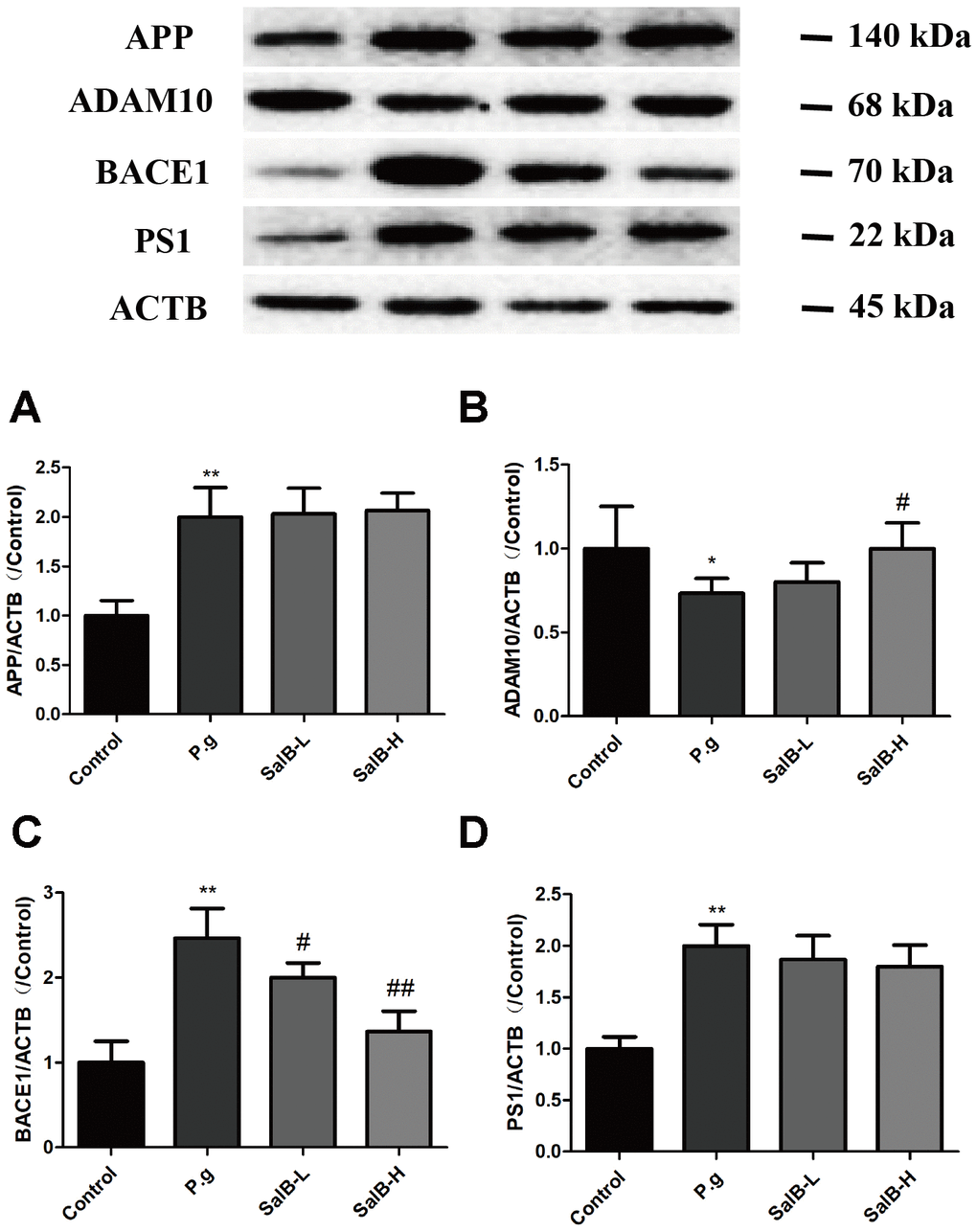 In summary, this study provided some evidences that SalB could improve cognitive impairment via regulating neuroinflammation and Aβ metabolism in P. gingivalis-infected mice. SalB might be developed as an anti-AD drug. However, further studies are still needed. We will further study the mechanisms of P. gingivalis-induced Aβ accumulation. In addition, the key molecule of the target in SalB’s effect is still needed to identify.
