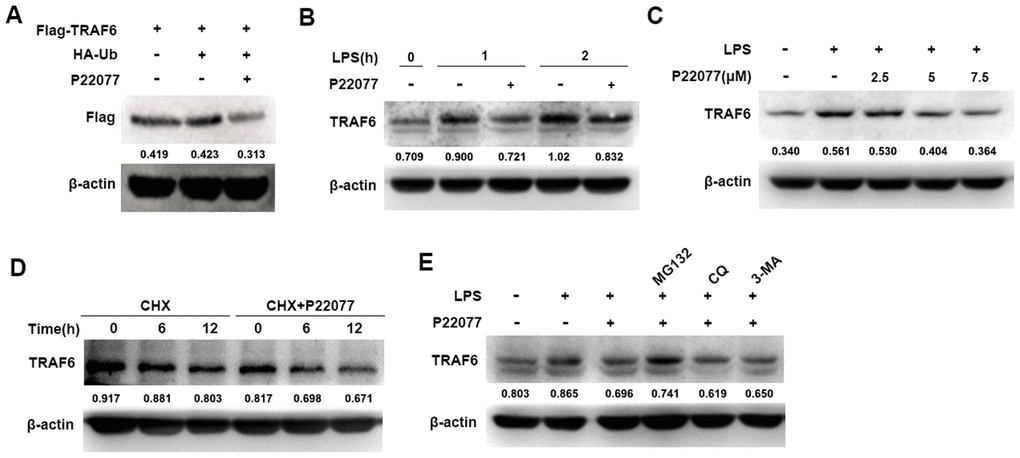 P22077 promotes the degradation of TRAF6 in a proteasome-dependent manner