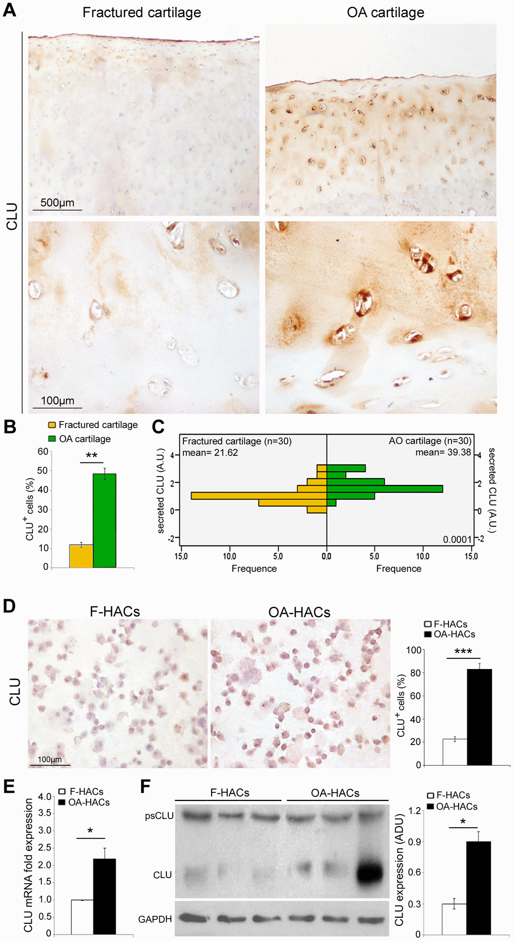 CLU is highly expressed in human OA articular cartilage chondrocytes in vivo and in vitro