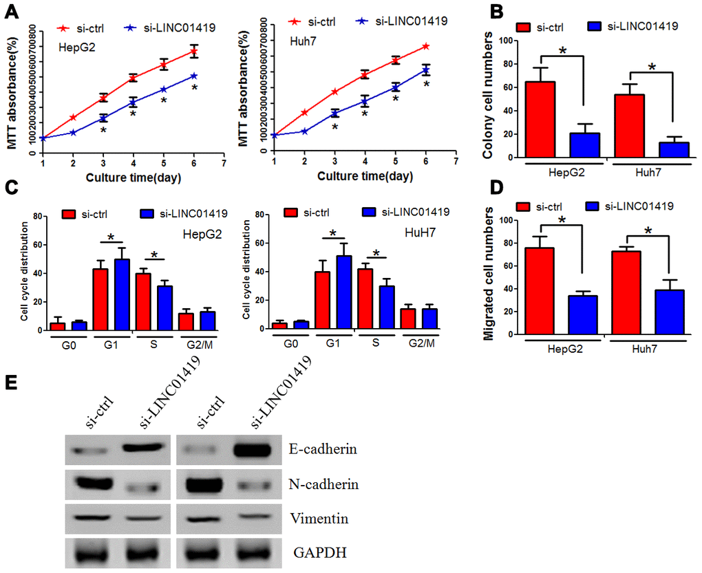 In vitro LINC01419 silencing inhibits proliferation and migration of HCC cells