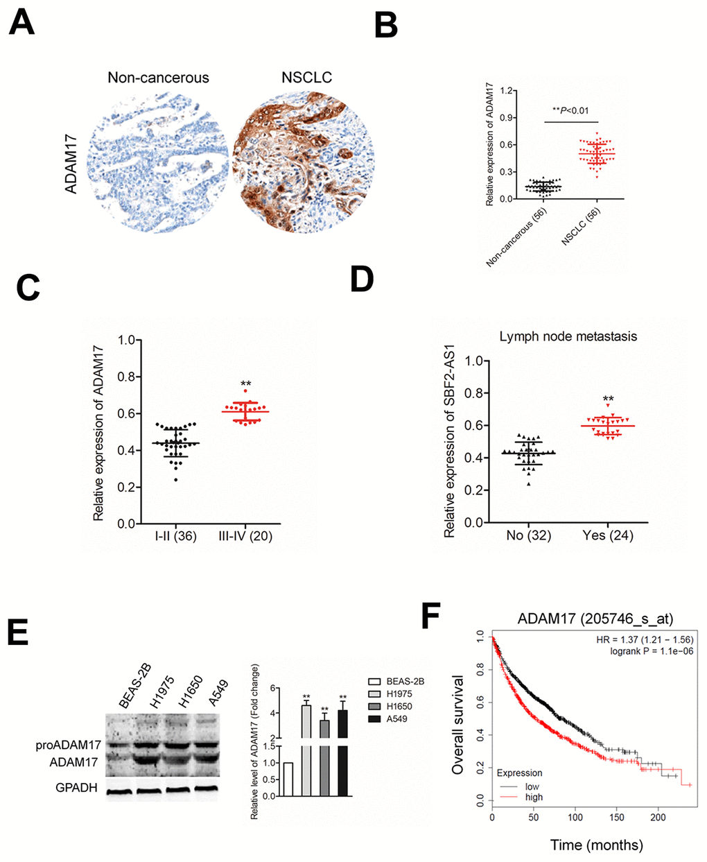 ADAM17 is upregulated in NSCLC