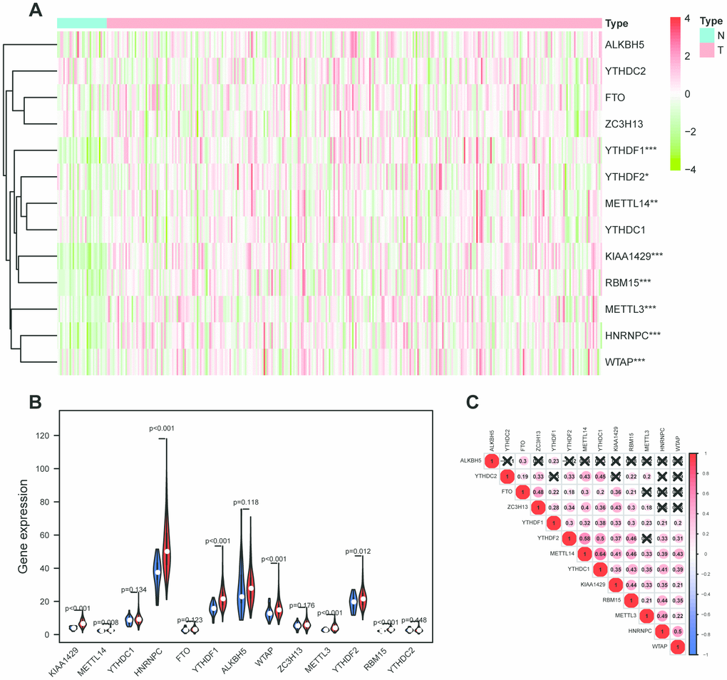 More than 160 different chemical modifications in RNA have been identified in all living organisms [4]. Among these RNA modifications, N6-methyladenosine (m6A), methylated at the N6 position of adenosine, is the most widespread internal modification. M6A is methylated by methyltransferase, removed by demethylase and recognized by m6A binding protein and they are jargonized as ‘writers’, ‘erasers’ and ‘readers’ [5]. Researches demonstrated that m6A modification was significantly associated with the abnormal expression proto-oncogenes and tumor suppressor genes [6, 7]. It has opened a new chapter in cancer research to explore the role of m6A. M6A plays a significant role in translation [8], splicing [9], stability [10], degradation, transcript, nuclear transport [11]. Recent studies indicate that m6A modification is related to tumorigenesis [12], proliferation [13], invasion [14] and metastasis [15]. In OSCC, research has indicated that METTL3 enhanced OSCC tumorigenesis through YTHDF1-mediated m6A modification [16]. However, there are fewer studies to explore the m6A prognostic value in OSCC through analyzing m6A-related genes.