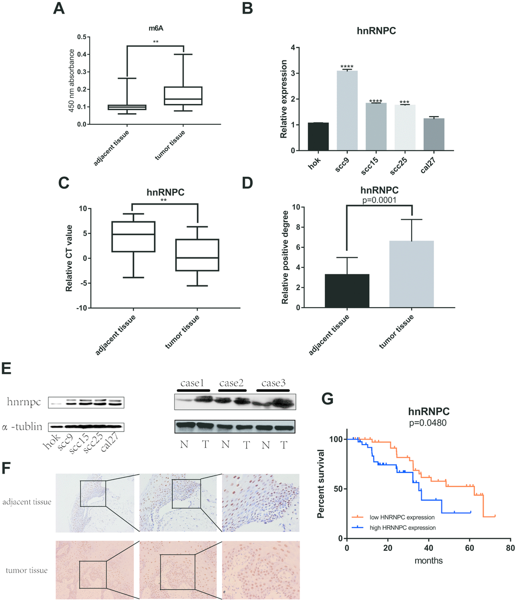 Abnormal m6A quantification level and HNRNPC expression in OSCC
