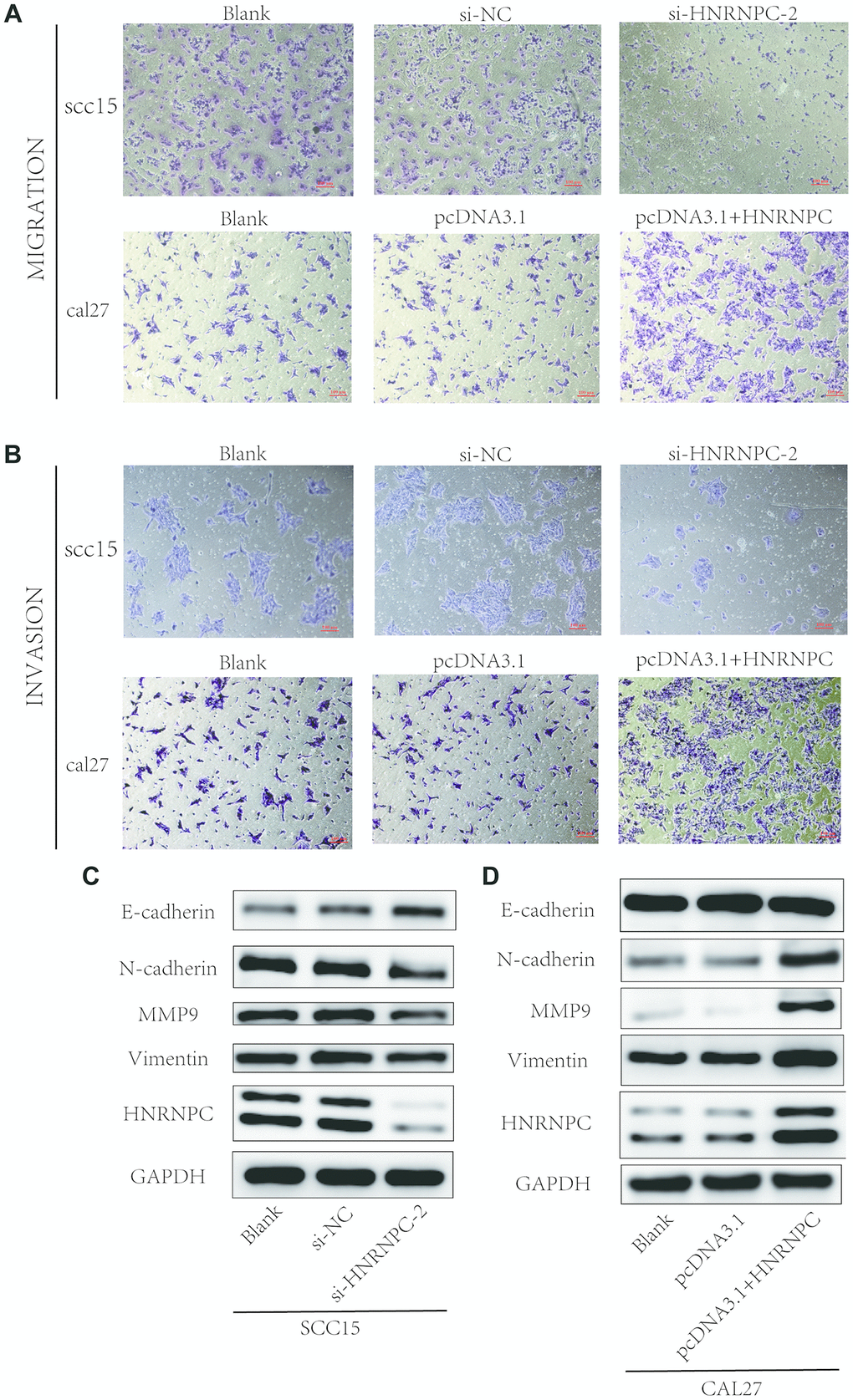 HNRNPC promotes OSCC proliferation, migration, invasion and EMT (epithelial-mesenchymal transition)