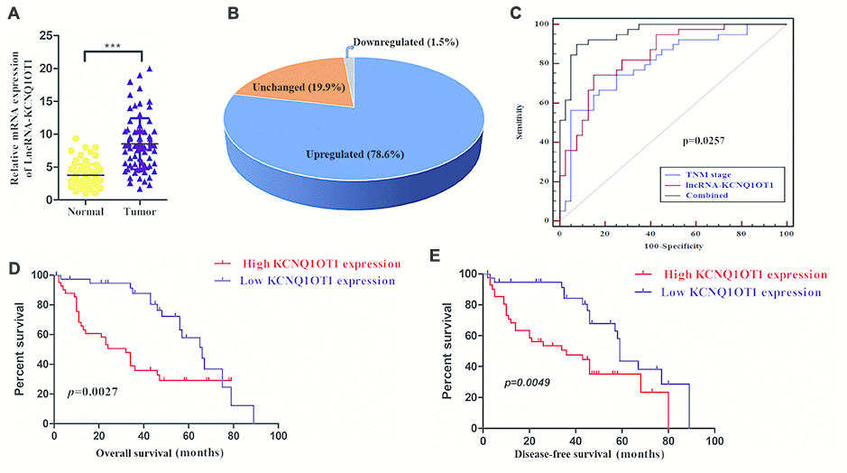 In this study, we investigated the mechanistic role and prognostic significance of lncRNA KCNQ1OT1 in colorectal cancer (CRC).