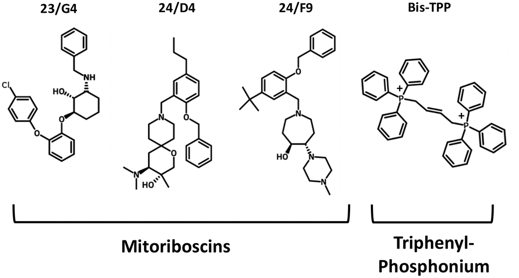 MDA-MB-231 cells, a human breast cancer cell line, were obtained from the American Type Culture Collection (ATCC). Mitoriboscins (23/G4, 24/D4, 24/F9), Butene-1,4-bis-triphenyl-phosphonium (Bis-TPP), and Dodecyl-TPP, were all as we previously described [15–17].