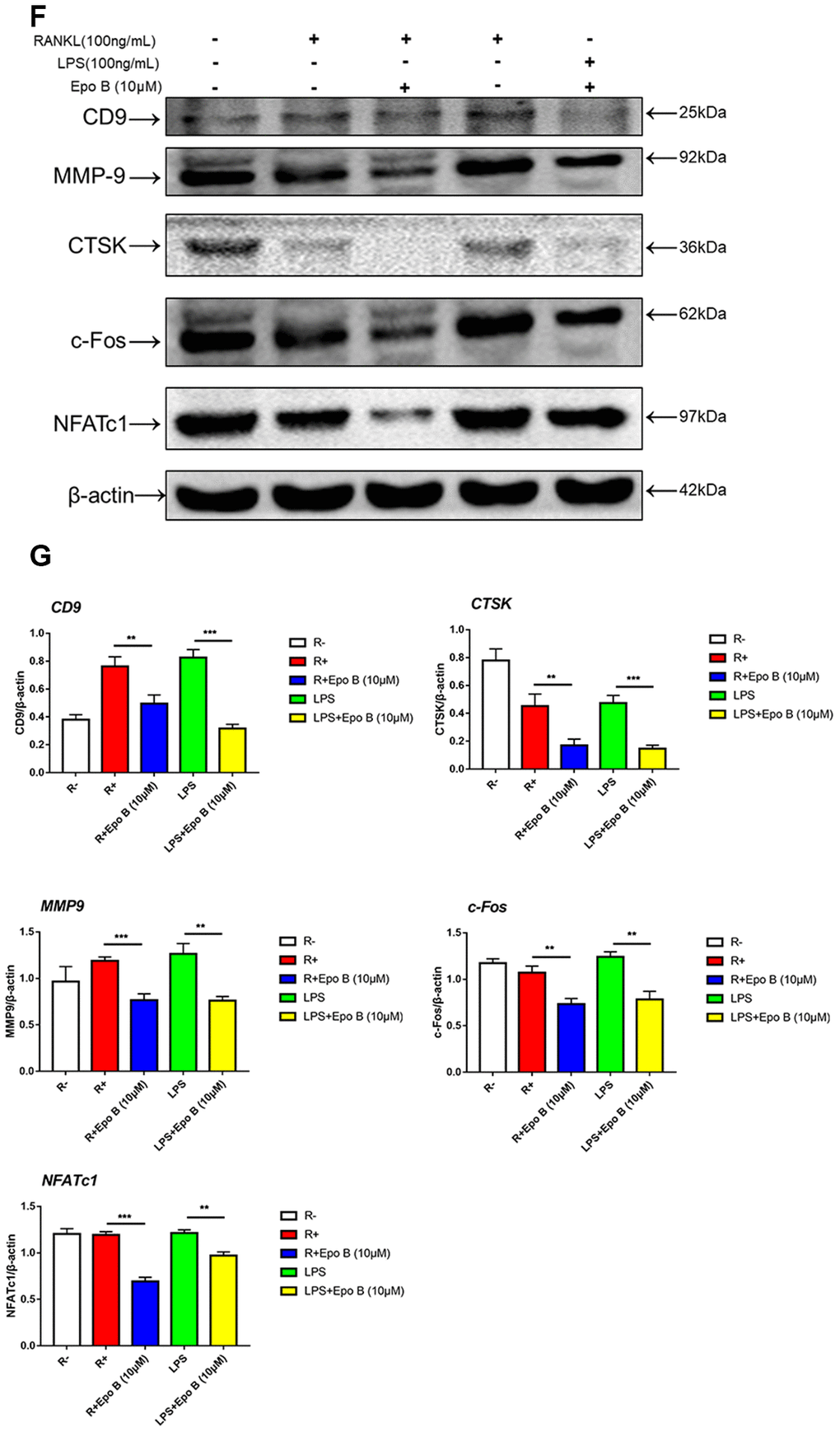 Epo B suppressed RANKL and LPS induced osteoclast differentiation