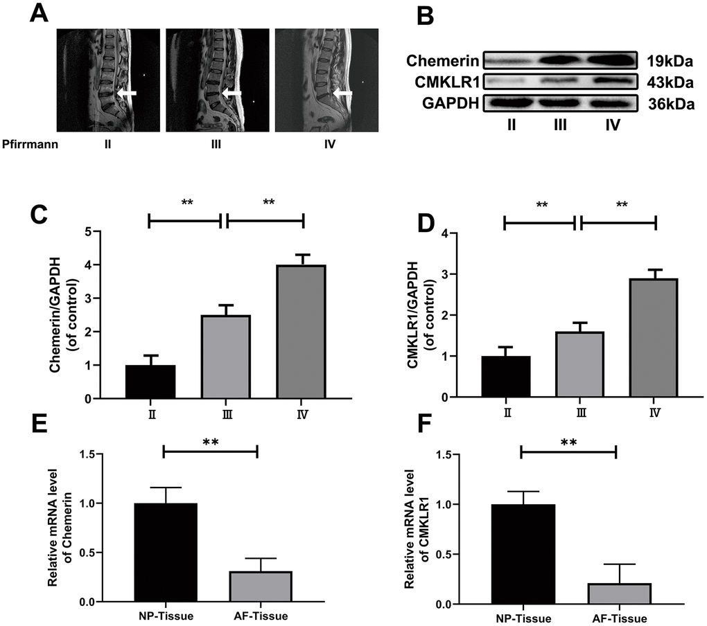 The expression of chemerin, and CMKLR1 levels in different degenerated human NP and blood tissues