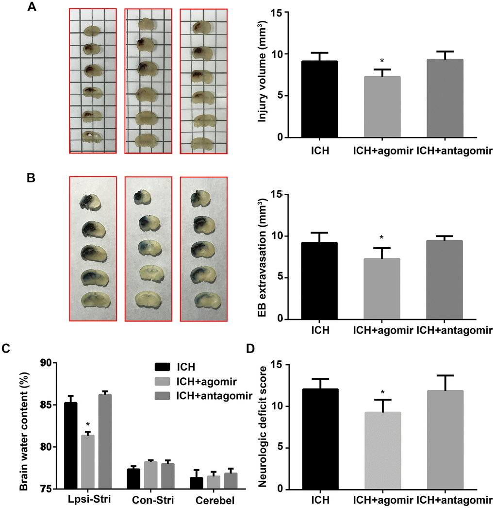 miR-183-5p reduced neurologic deficits, BBB permeability, and lesion volume after ICH