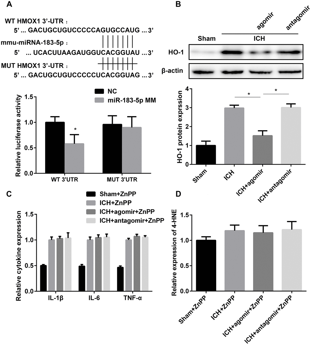 To sum up, overexpression of miR-183-5p protects brain tissue and improves neurologic function after ICH by inhibiting HO-1 expression.