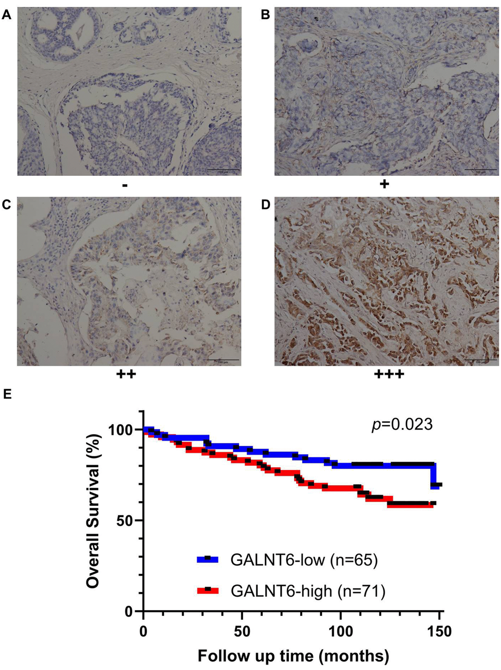 Immunohistochemistry (IHC) validation of GALNT6 expression predicting poor survival in breast cancer