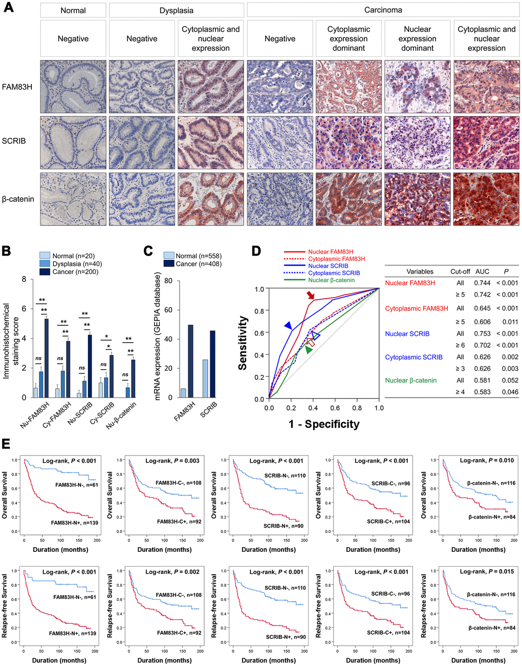The expression of FAM83H, SCRIB, and β-catenin in gastric carcinomas
