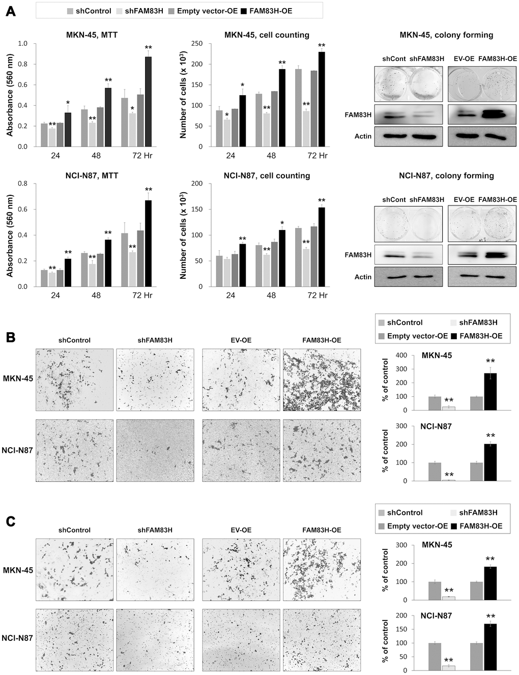 FAM83H and SCRIB stimulate the proliferation and invasiveness of gastric cancer cells