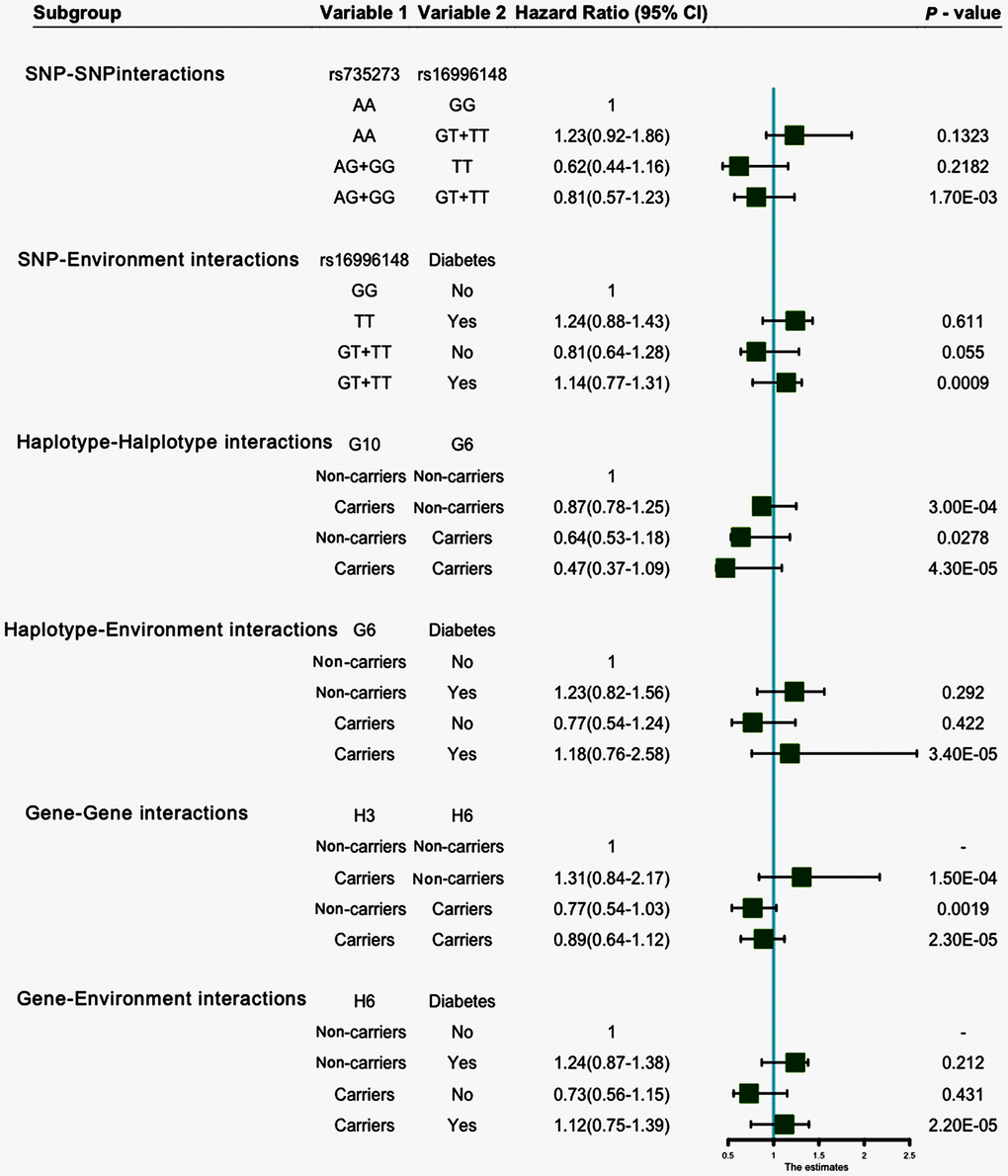 Figure 7. SNP-SNP, SNP-environment, haplotype-haplotype, haplotype-environment, gene-gene and gene-environment interactions on the risk of hyperlipidemia.