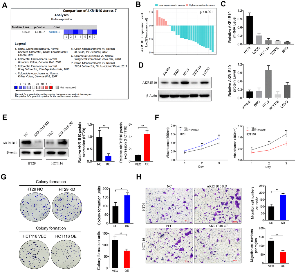 Ectopic AKR1B10 inhibits proliferation and migration of CRC cells in vitro