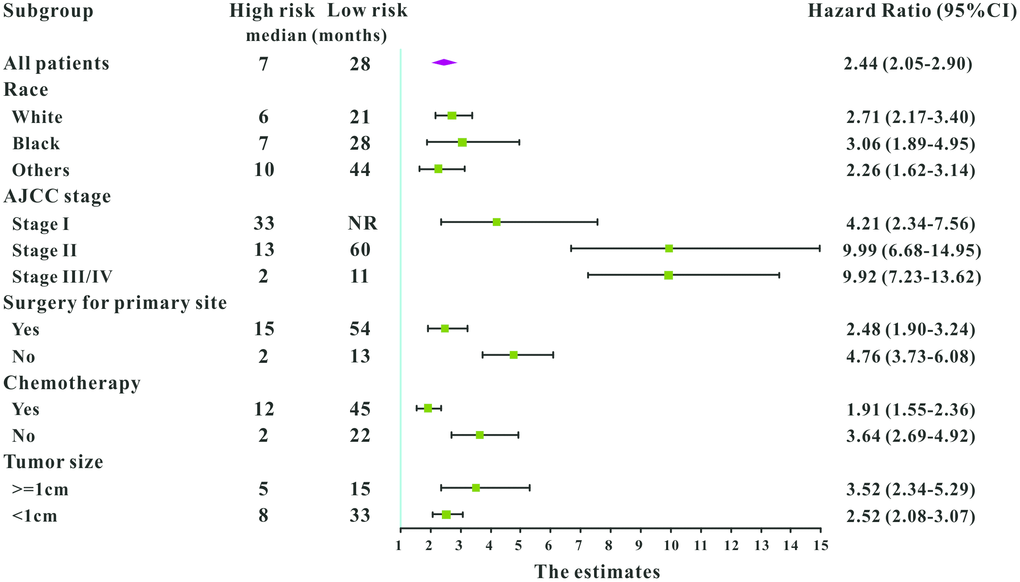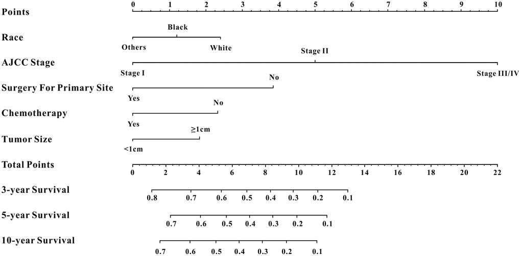 In conclusion, race, AJCC stage, surgery for primary site, chemotherapy and tumor size are independent prognostic factors of OS for patient with EODGC. Our survival nomogram model provides an applicable tool with good discrimination and calibration abilities to predict the prognosis of EODGC.