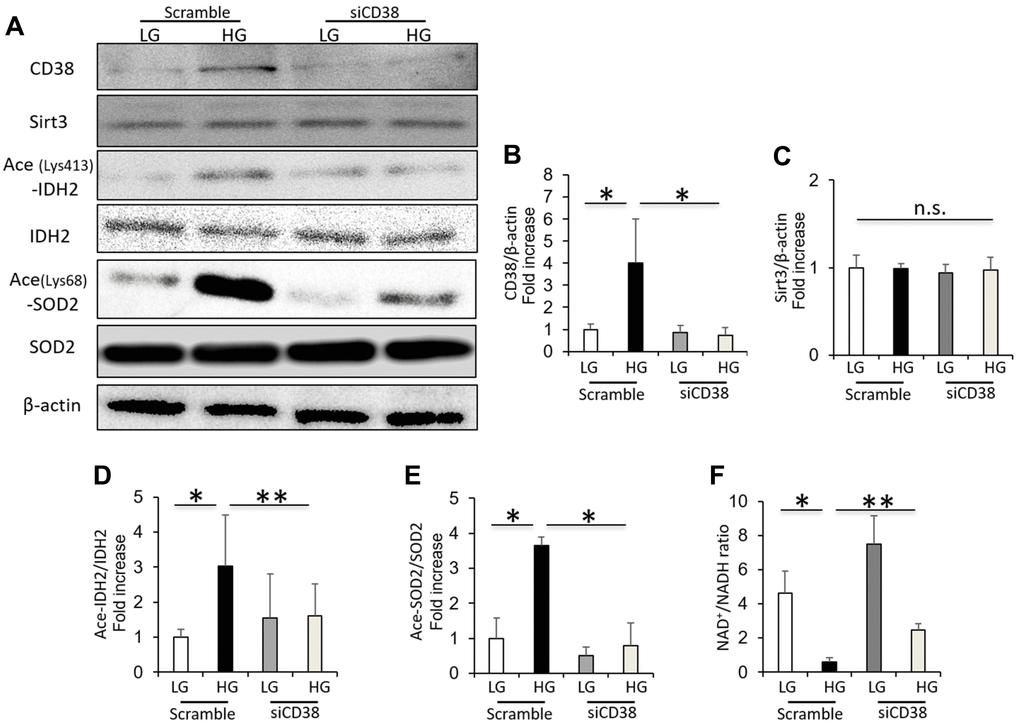 CD38 knockdown increases Sirt3 activity and intracellular NAD+/NADH ratio in renal proximal tubular cells grown in high glucose