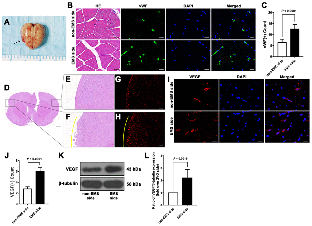 EMS can induce a microenvironment of EC proliferation and improve CBP in the ischemic brains of 2VO rats