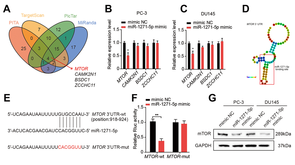 miR-1271-5p acts as a tumor suppressor and targets mTOR in PCa cells