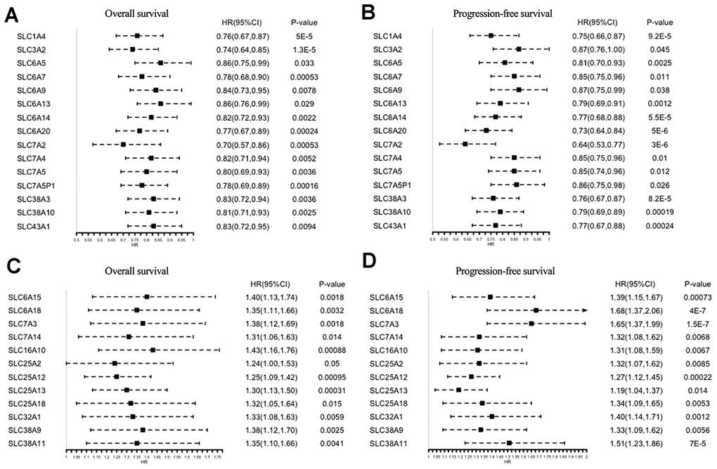 Prognostic value of SLC family members