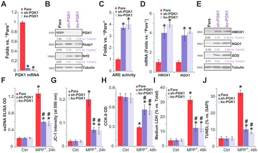 PGK1 shRNA or KO activates Nrf2 signaling and inhibits MPP+-induced cytotoxicity in SH-SY5Y cells