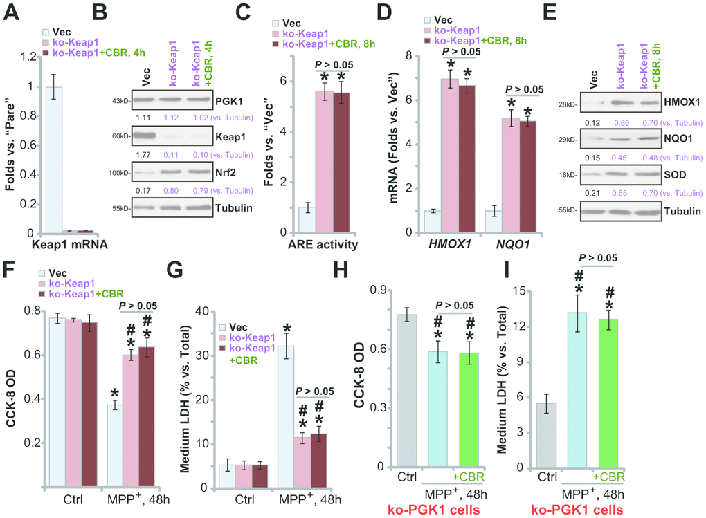 In Keap1-KO or PGK1-KO SH-SY5Y cells CBR-470-1 fails to offer further cytoprotection against MPP+