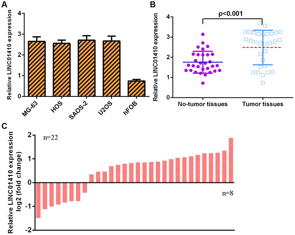 LINC01410 was overexpressed in osteosarcoma specimens and cells