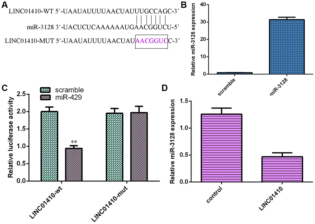 LINC01410 acted as a sponge for miR-3128