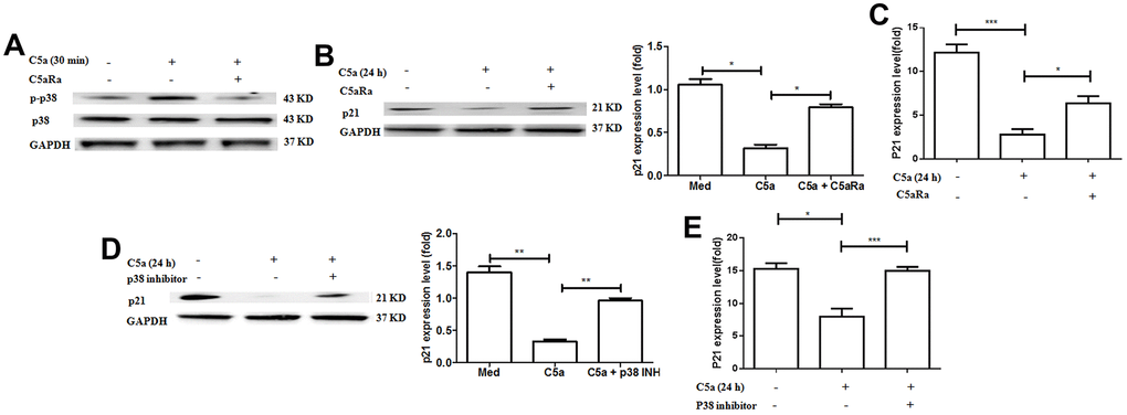 C5aR signaling suppresses p21 expression through activation of the MAPK/p38 pathway