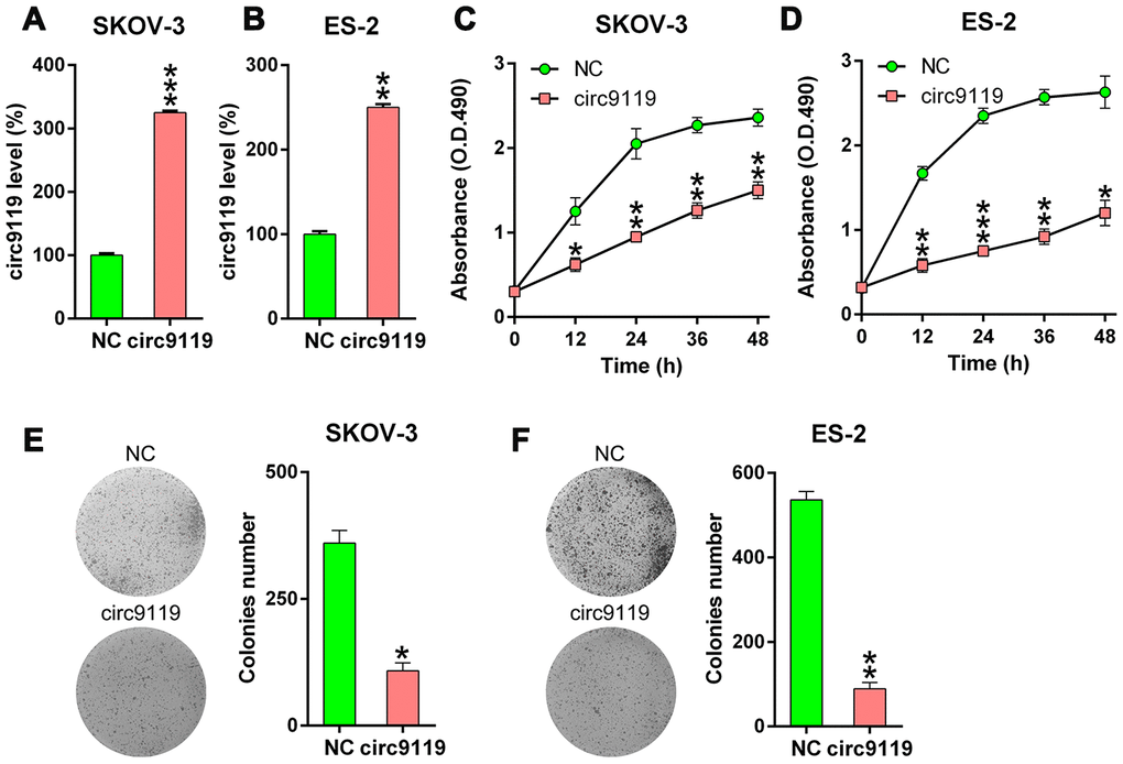 Circ-9119 overexpression suppressed ES-2 and SKOV-3 cell viability