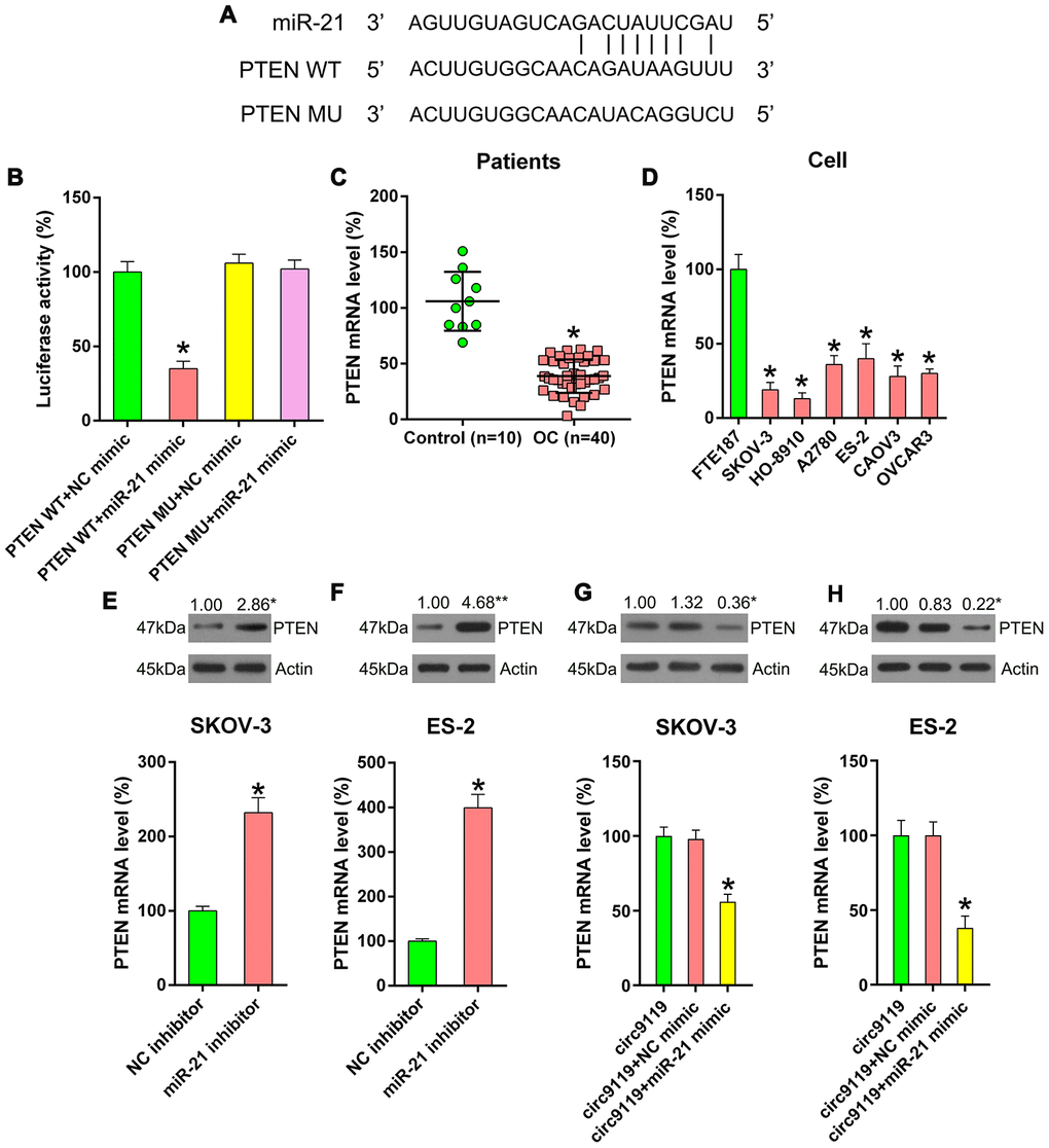 PTEN–Akt pathway is responsible for circ9119-miR-21-mediated OC cell viability