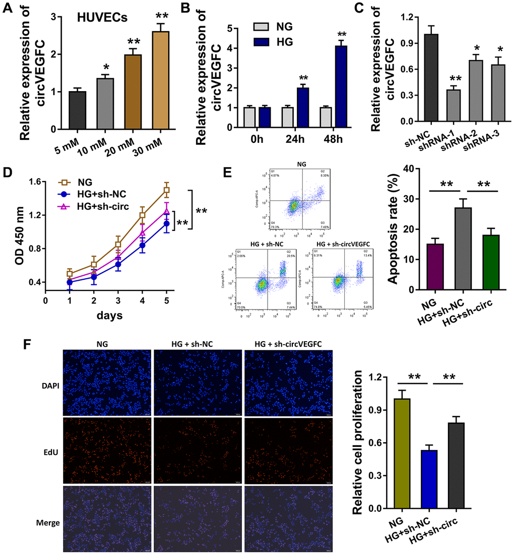 circVEGFC knockdown alleviated the apoptosis and proliferation inhibition induced by HG