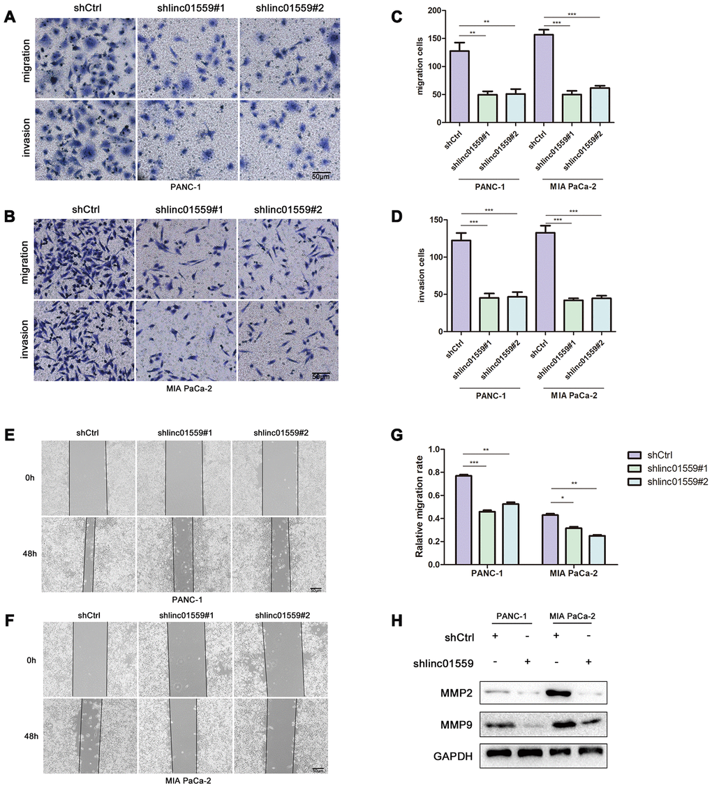 Silencing of LINC01559 expression suppressed PC cell migration and invasion