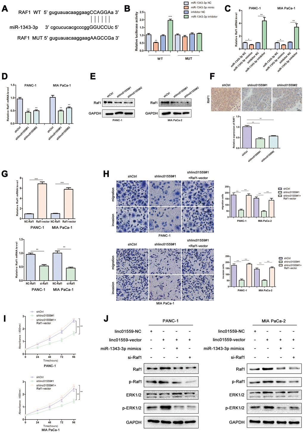 miR-1343 targeted RAF1 and LINC01559 positively regulated RAF1 via miR-1343-3p