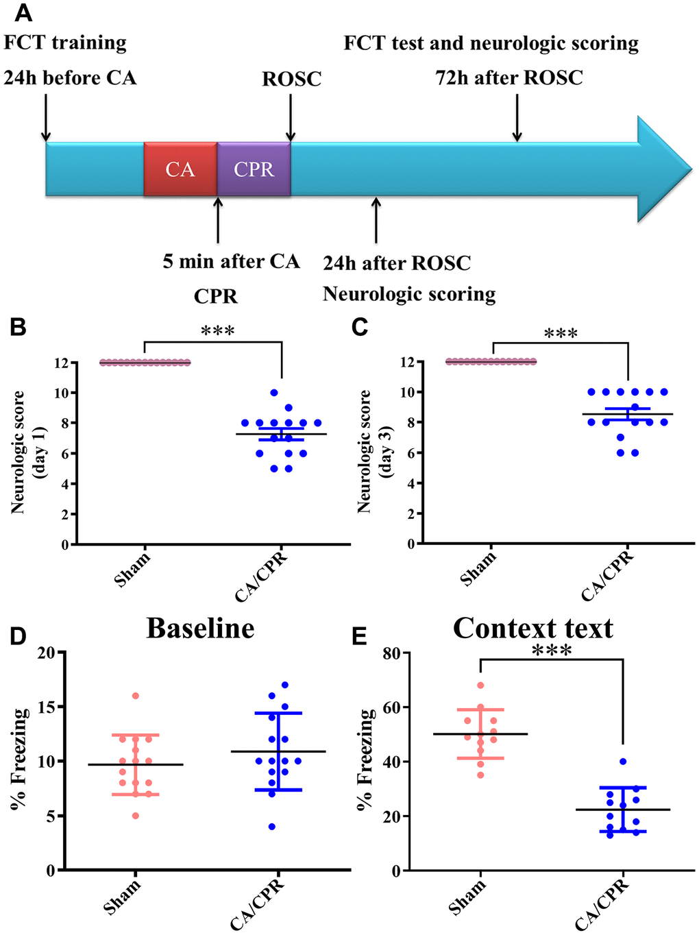 Mice following CA/CPR exhibited severely neurological and cognitive dysfunction