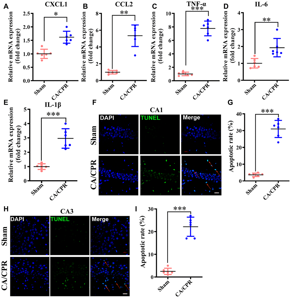 Neuroinflammation and neuronal apoptosis were dramatically elevated in the hippocampal tissue post-CA/CPR