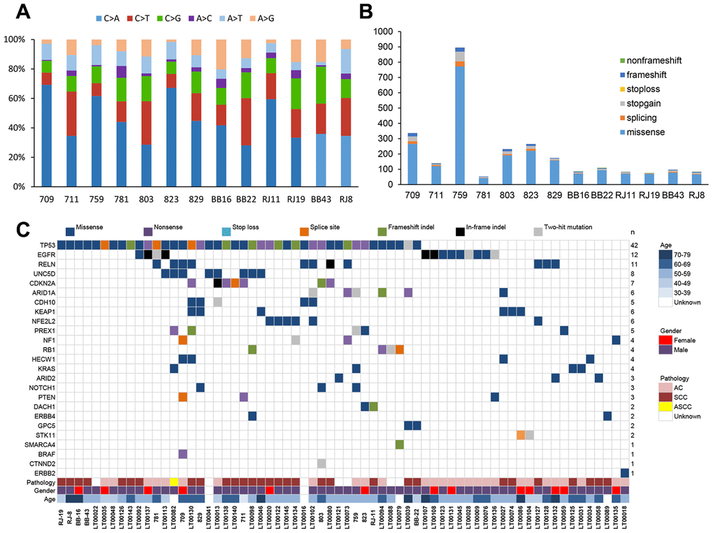 To control for tumor heterogeneity and passenger mutations, the tumors included in our study all harbored TP53 mutations, which are known to play an important role in the tumorigenesis of lung epithelial cells. The average sequencing coverage of whole-exome sequencing was reported previously [13].