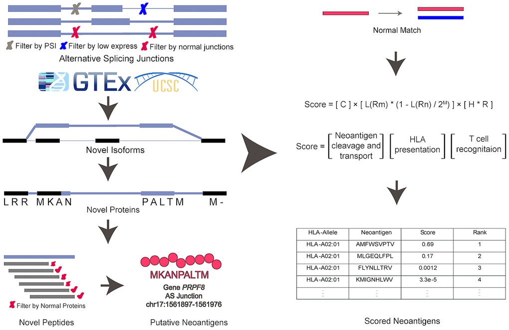 It should be note that our previous work proposed the score schema to evaluate the immunogenic potential of the gene fusion based neopeptides. But all the factors relevant to the immunogenic potential in score scheme is only peptide specific, so it can be employed to evaluate the AS based candidate neopeptides as well.