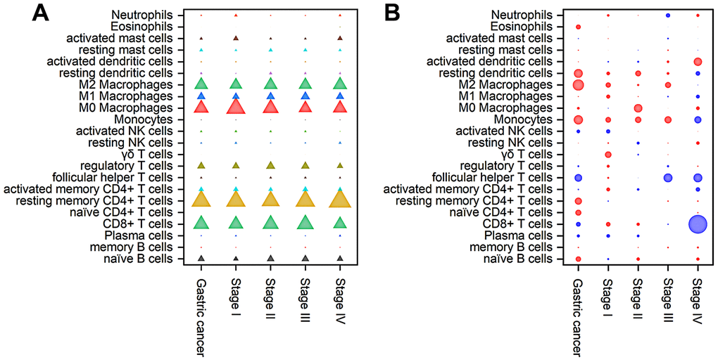 Immune cell composition and its prognostic significance in different stages of gastric cancer