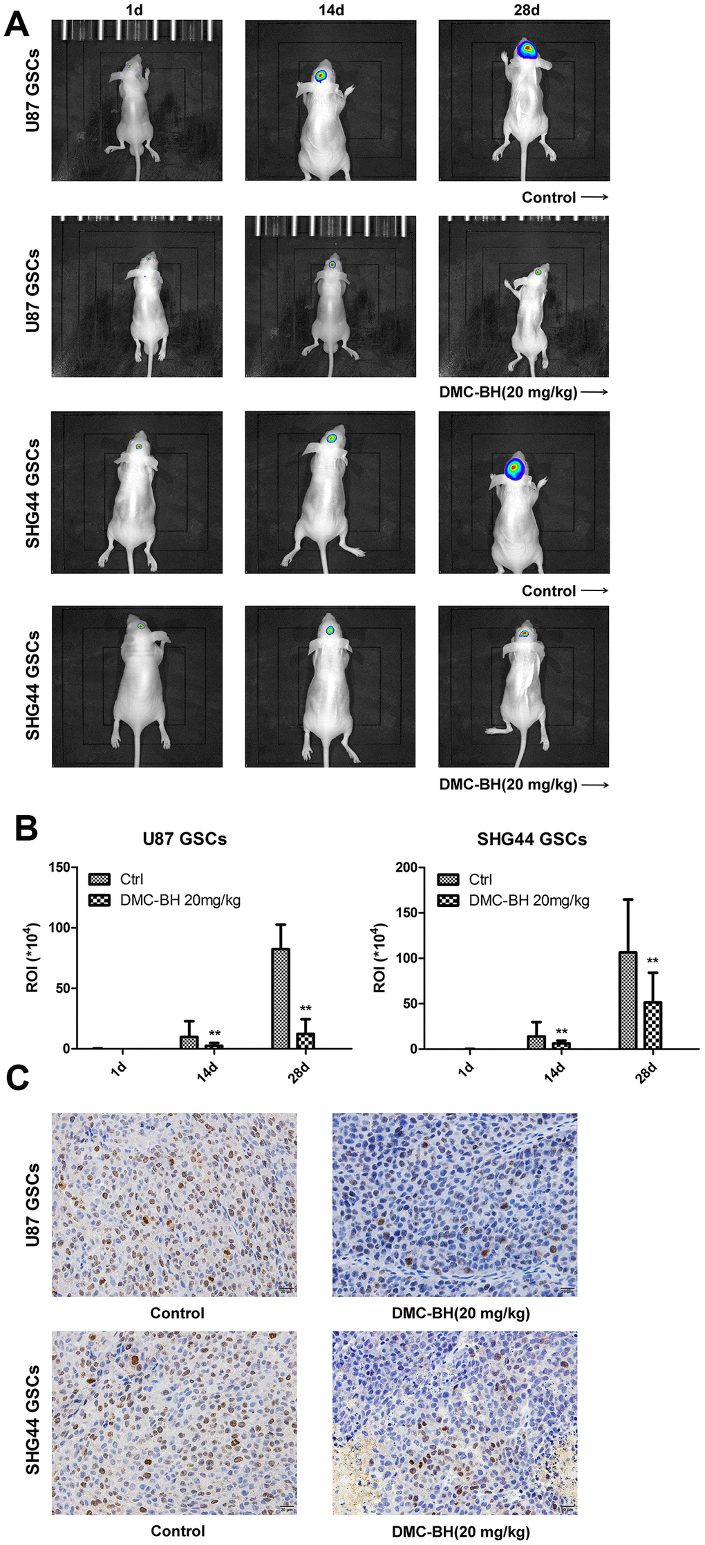 DMC-BH inhibits GSCs intracranial orthotopic growth