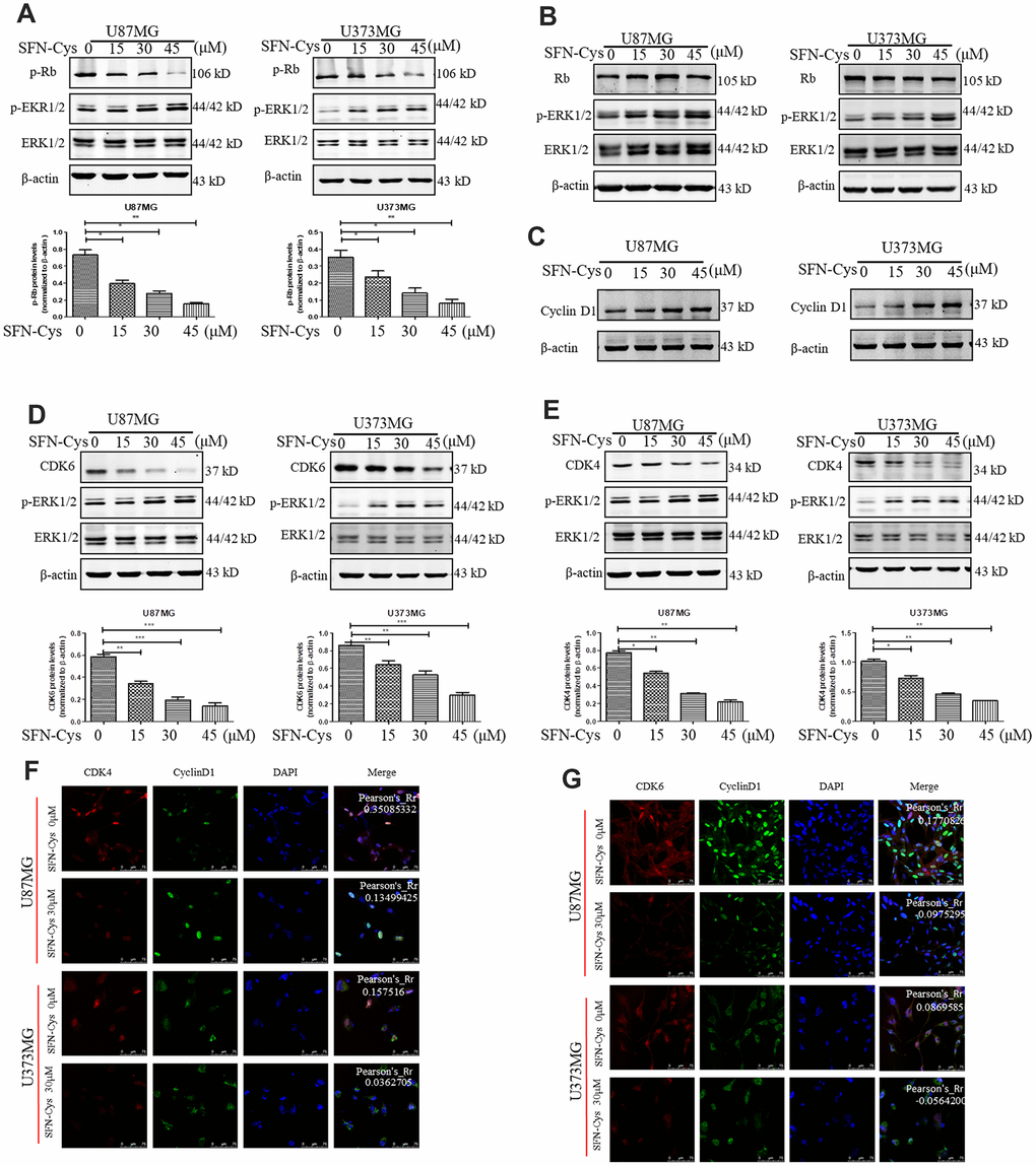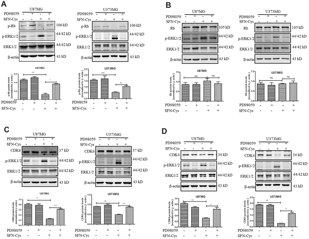 SFN-Cys decreased the expression of p-Rb, CDK4 and CDK6 via ERK1/2 phosphorylation