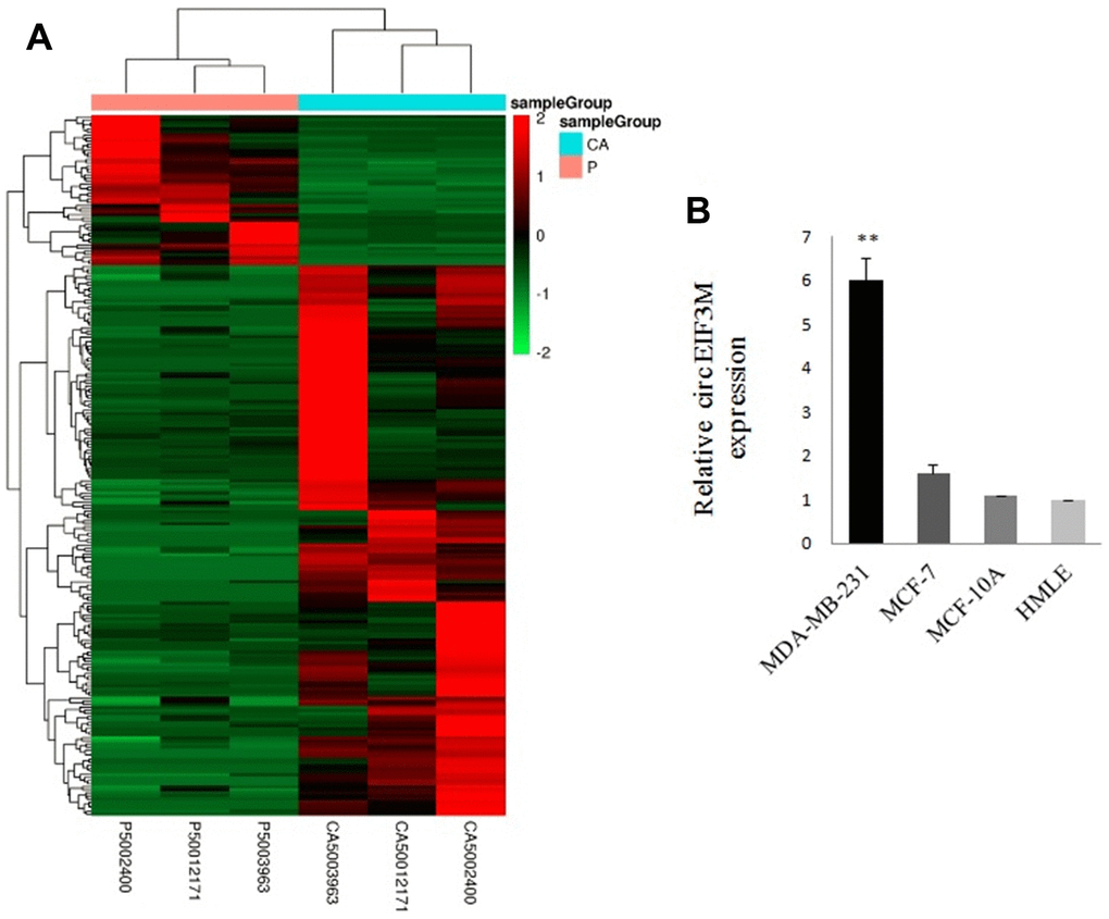 TNBC is a highly malignant breast cancer subtype with a poorer prognosis than other molecular subtypes. Despite the development therapeutic strategies that enable patients to achieve pathological complete response after neoadjuvant chemotherapy, TNBC patients still have higher metastasis rates and poorer prognoses than patients with other breast cancer subtypes. Therefore, in an effort to identify an effective therapeutic target for TNBC, we performed a comprehensive systemic bioinformatics analysis of the global changes in the pattern of circRNA expression in TNBC.