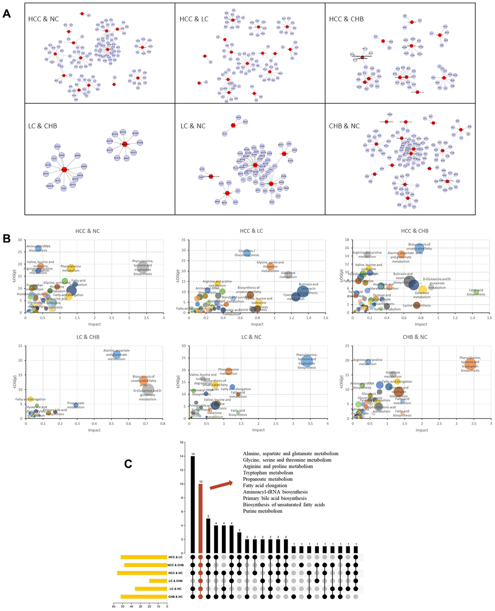 Overall metabolic profile of CHB, LC and HCC