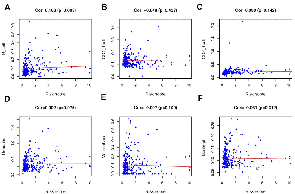In order to verify whether the immune genome accurately reflects the status of the tumor immune microenvironment, we analyzed the relationships between the sIRlncRs and immune cell infiltration (Figure 9A–9F). We found that only B cell showed the most significant relationship with sIRlncRs (Figure 9A).