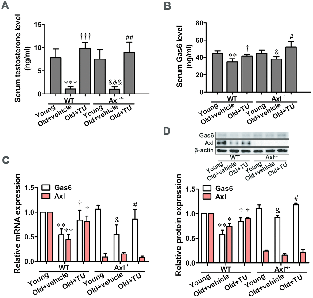 TU treatment up-regulated testosterone and Gas6/Axl expression in aging mice