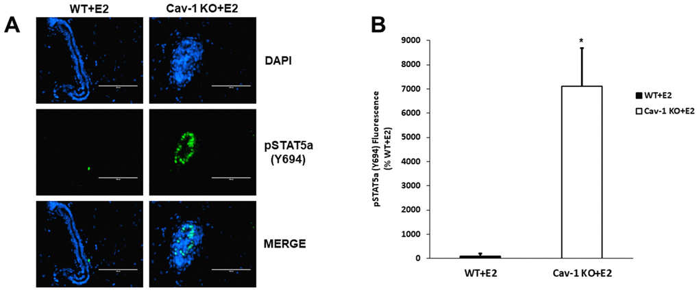 Cav-1 KO DCIS lesions display increased phosphorylated STAT5a (Y694) levels as a response to 17β-estradiol treatment