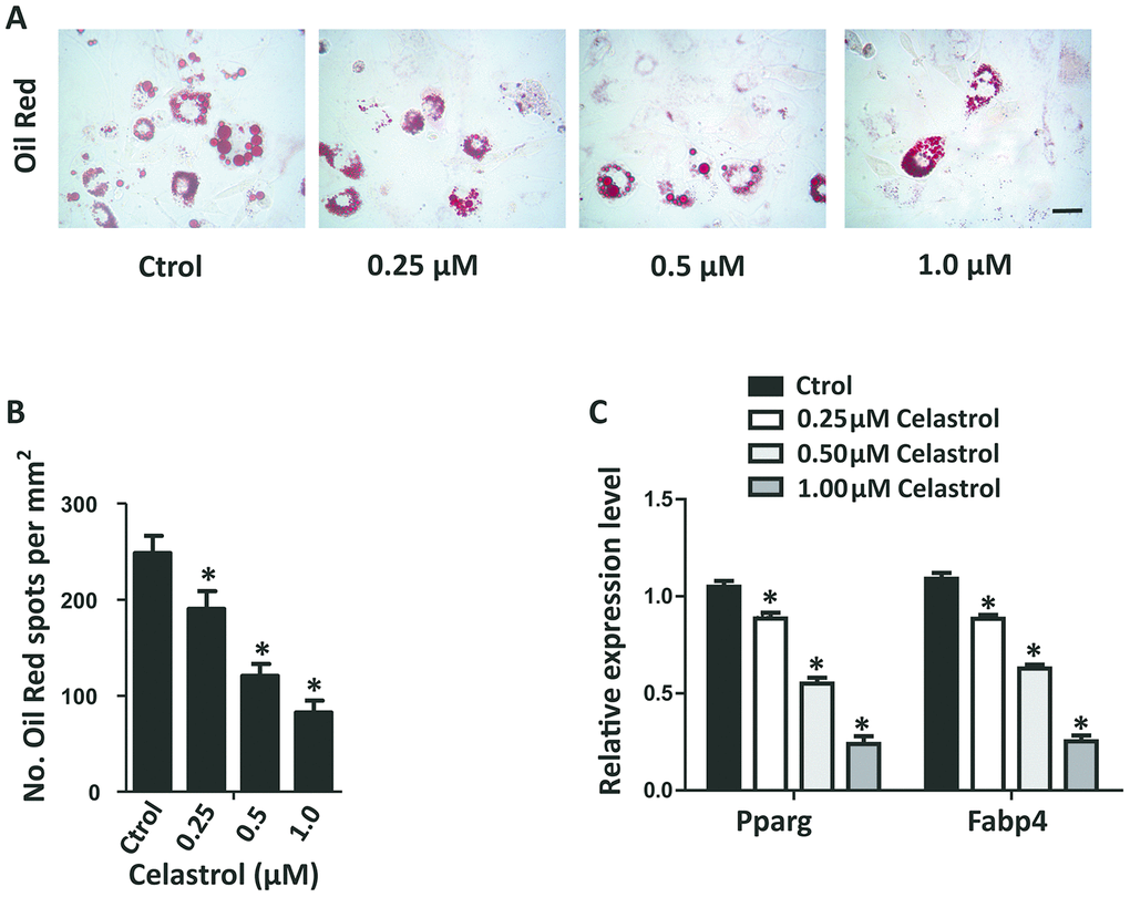 Celastrol inhibited the adipogenic differentiation of BM-MSCs in vitro